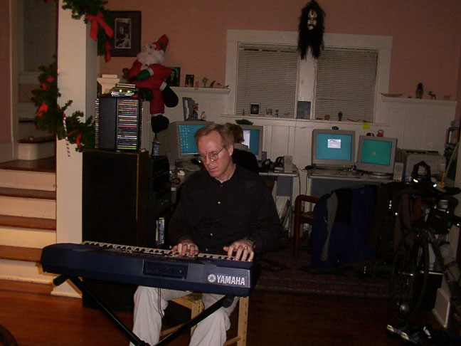 Christmas cheer!Steve plays for us sarah in her afghan again the festive tree and more tree