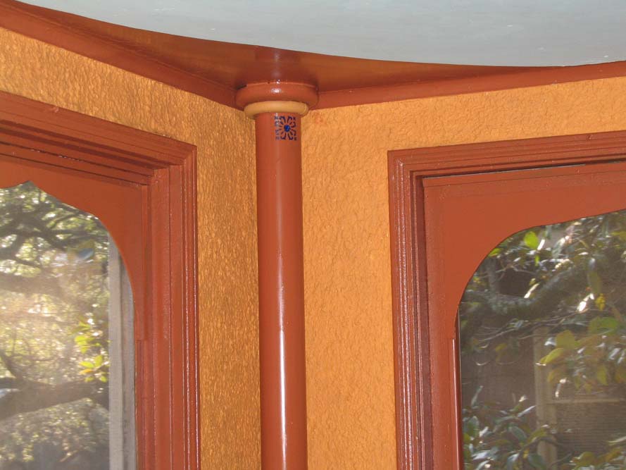 I start stenciling the borders on the column