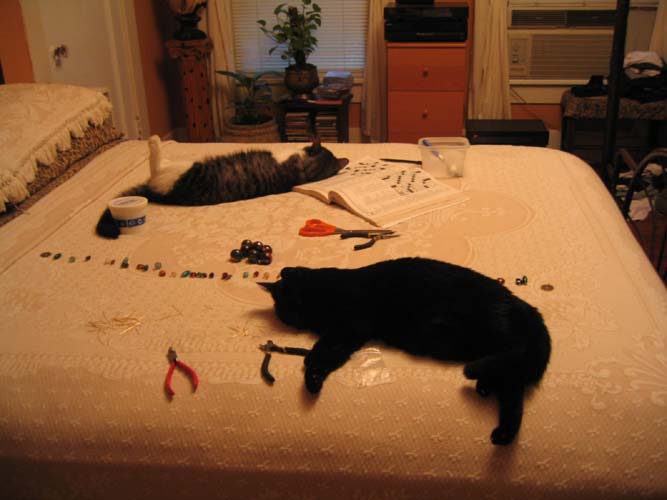 just to spite her, Thai got on my puzzle book which only Midi does so Midi took over helping me sew some beads on the curtains