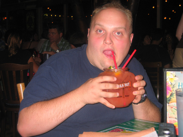 then we went to the Hula Hut for dinner and a couple of drinks, Nick got his drink in a fishbowl