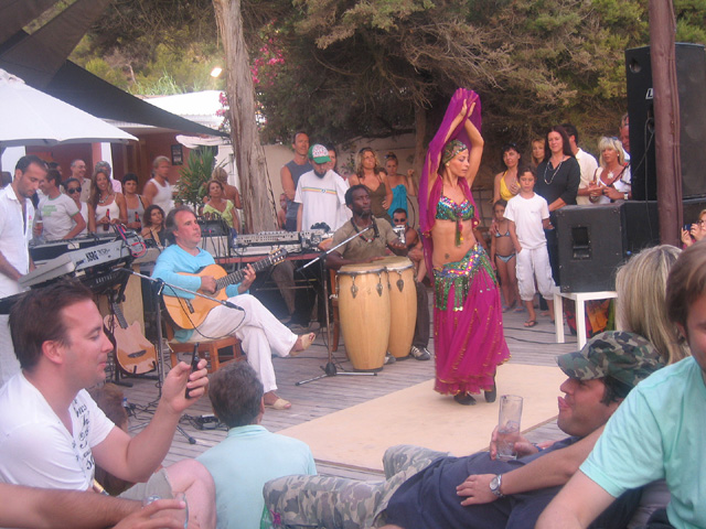 On our last evening we pack, put the suitcases in the car and head to the Blue Marlin to meet Cecilia and watch Paco Fernandez play his flamenco fusion, joined by a rapper from NYC, his keyboard and percussion players and a dancer. What a great evening. He is fantastic, the crowd was wonderful consisting of hippies, rich folk off the yachts in the harbor (the Marlin is on the beach), locals and other visitors