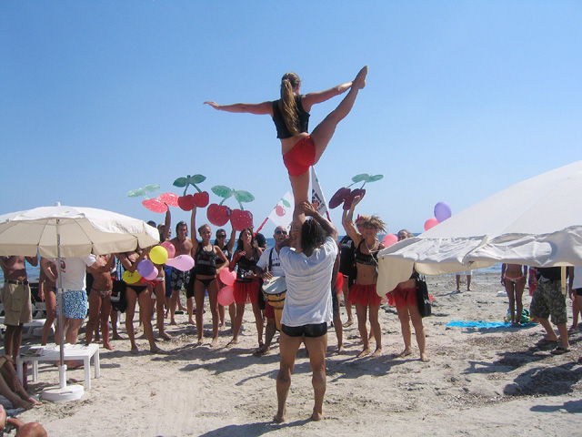 the insaniacs from f*** me I'm famous come and do their capoiera and acrobatic magic on Salinas to advertise the night