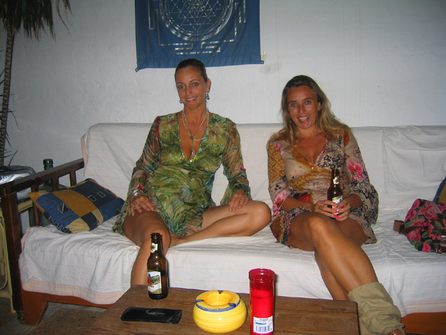 Now, strange things happen sometimes in Ibiza. A couple of years ago, my friend Bonnie introduced me to her friend Rochelle in Houston. Rochelle went to Ibiza in the early '70s via a British mail van and most of Europe with her kids. She has a shop there on the beach at Cala D'hort overlooking Es Vedra (the sleeping dragon) and lives in Houston part of the year and Ibiza part of the year. The island of Es Vedra is one of the most magnetic places on earth. Very magical. So, we were supposed to go see Rochelle last year but two weeks gets shorter when you're living them and we never managed. This year I met her again at my jewelry party in Houston. As our vacation wound down we started talking about going to see Rochelle. There were just a few days left. We came home at dawn one morning after seeing Ferry Corsten and just slept and then lounged around the house. In the afternoon Mike needed to go to the internet cafe to do a few work things. At the very last minute I decided to go with him just to get out of the house. He let me off at the cafe because there was no parking in sight and it took ages for him to park and walk back. I went in, ordered a juice and a tostada and sat down at a computer. I sensed someone walking by me and looked up, it was Rochelle. Until that moment I wasn't sure I'd remember what she looked like. But when I saw her I knew instantly. She didn't recognize me at all until I said who I was. She had just come in to use the bathroom. She almost didn't. That's the kind of thing that happens when you travel. A few seconds either way in either of our schedules and we would never have seen each other. I'm so glad I did. It was even more chancy because she had only just arrived on Ibiza and was heading out again very quickly as she is caring for her mother who has alzheimers. We joined her that evening at Cala D'hort on the beach and then went back to her house in the hills overlooking Es Vedra and drank some wine and watched the sun set and the moon rise. Another friend of hers joined and it was very very pleasant.