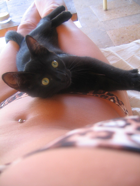 This year Bettina said she had a project for me, a small black kitten had turned up a couple of weeks beforehand and no one could touch it or get near it. The family wanted to keep it but couldn't get it to trust them. So, I went to work. By the time we left the kitten was sleeping in bed with us, running up to everyone, eating indoors, playing and laying on his back purring between Mike and I and looking at us over his belly. Oh he is so sweet and full of love. Also as he became more socialized, Tiger the older cat decided he might be worth playing with. Bettina sent me a text when I got home from India saying that he was sitting on the verandah of our casita waiting for us to come back. OH. Sadmaking. I told her to give him, Blackie (the kids named him) lots of love and he would stop waiting for us and transfer his affection to them.