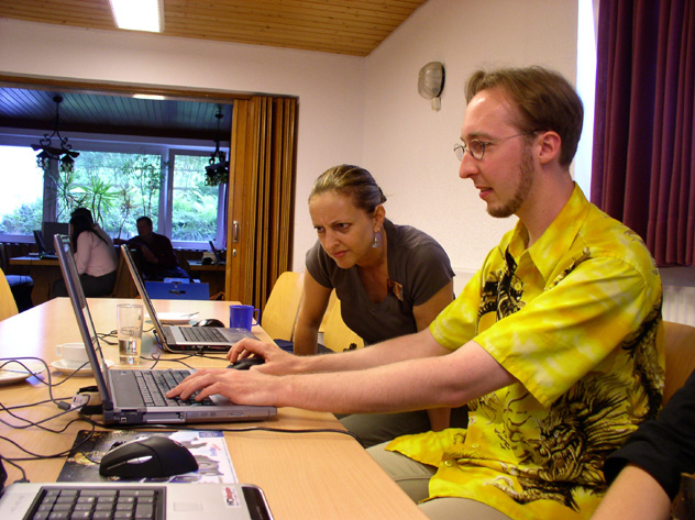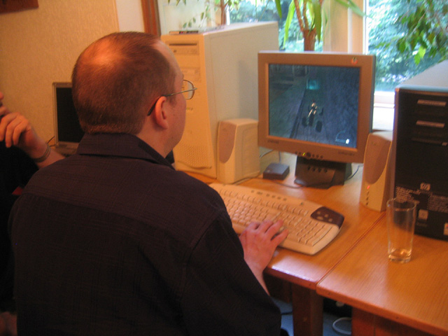 This was such a fun trip. Liz and I went to Amsterdam to Gerty's house and met up with Ian and Dutchy there. We also had dinner and visited with Jantje, another friend who wasn't going to the meeting in Germany with us. Then we set off from Amsterdam for Lage. We met up with Titya in Hengelo and had a nice lunch and then set off in our little convoy. It took about 3 hours to drive from Amsterdam to Lage and the countryside was beautiful. Very very green and fresh and the weather was quite cool. We arrived in Lage and checked into our hotel, Jagerhoff Wellie. Then we headed to the hostel Naturfreund Haus where the meeting was being held. The hostel was only open for us so it was just a huge group of mainly German Tombraider custom level players and builders. Not everyone was German, Ian came in from England and Dutchy is...well...Dutch...but he lives in Turkey, Gerty and Titya are Dutch and I was the only American there and certainly the only American living in India to be there. It was basically a huge LAN party. Everyone came in with their computers and set up. Team Gerty, as I dubbed us, set up on the little terrace because most of team Gerty smokes so they like to be outdoors. Then it was Tombraider playing non-stop for two days. I got a chance to try some levels and also to try out a beta which drove me NUTS. We shall refer to this as the great four leaf clover incident of 2007. It was such a great time and we left for Amsterdam on Sunday afternoon. Dutchy coined the great term "Lage lag" for how we were feeling that day.