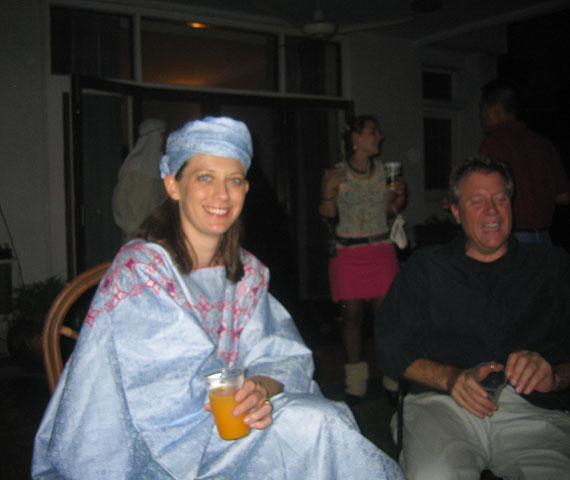 Then, the next Friday, Risha's Halloween party which was loads of fun - Mike re...vamped...ahahah..haha...his costume of the week before, I switched to gin sodden 17th century street walking wench