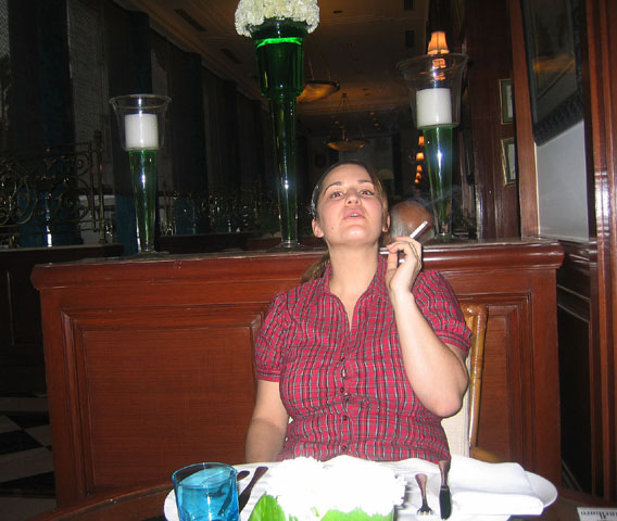 pulling a Marlene Dietrich at tea in the Imperial Hotel coffee shop