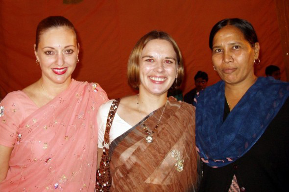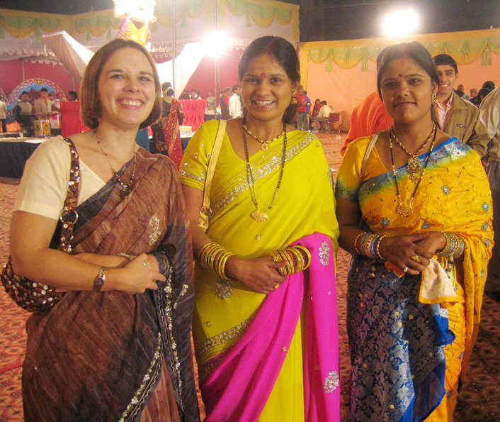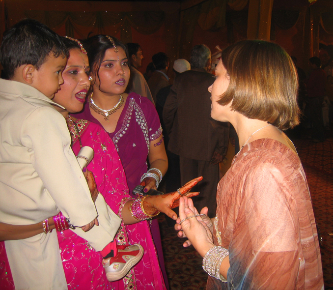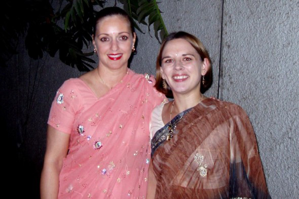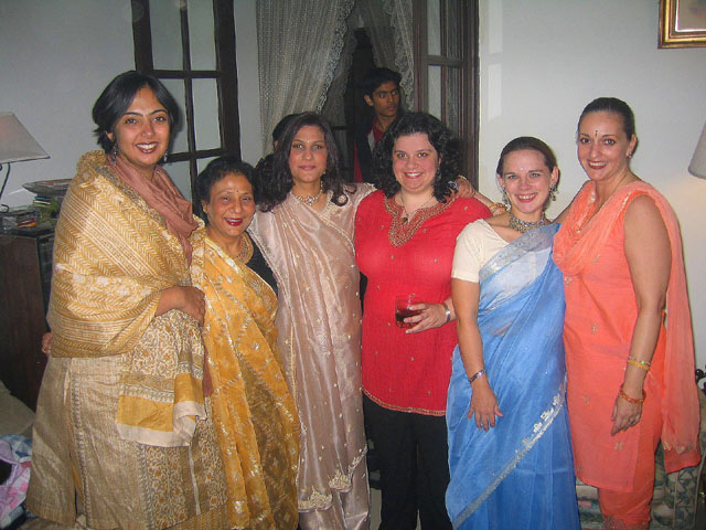 I wore my pink sari and Risha wore my brown one which I draped for her, it looked nice on her but she wished she'd worn a black choli.