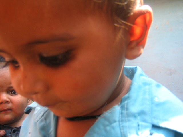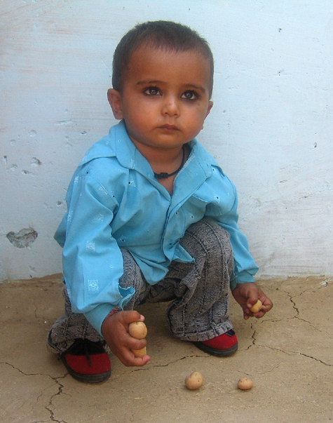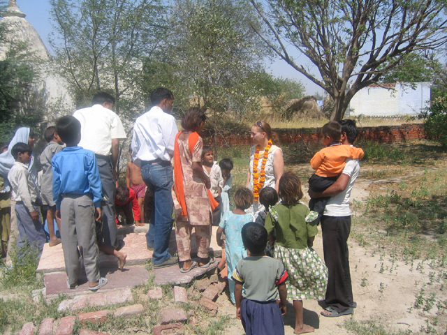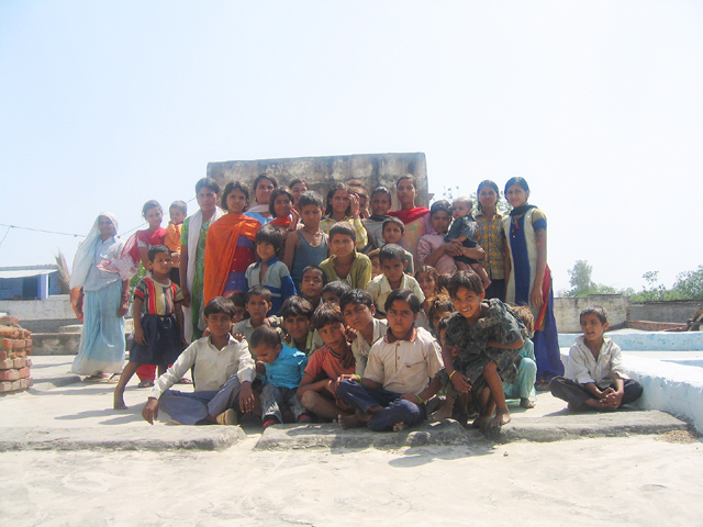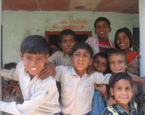 we brought a huge sack of candy for the village children, Raghuraj's brother is swamped while handing it out