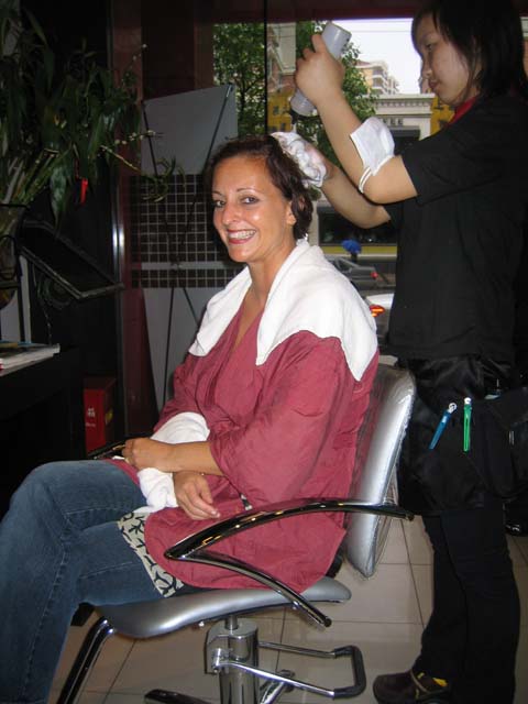 a lovely Dutchwoman takes me in hand along with another Fluor wife, shows us shops and teaches us the ways of shopping Shanghai including getting your hair washed and dried on the spur of the moment and also takes me for a foot massage which was fantastic