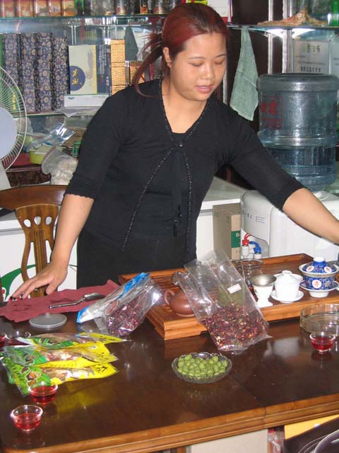The Tea Market - This was an amazing and new thing for me. This is a culture that knows and respects their tea. We went to a market that took two floors of a building and was full of small tea shops. Every merchant wanted you to come in and taste, see and smell their teas. The preparation is important, the heat of the water is important in fact every aspect of the tea preparation and drinking is important. We sat with several merchants and tried and bought their wares. I bought green teas fresh from different areas of China, jasmine balls which open and flower as they steep in the hot water, cranberry and flower teas AND a tea set AND a teapot. The tea set was fairly generic but the teapot was a famous purple clay and I bought it from the artisan himself which made it special to me.