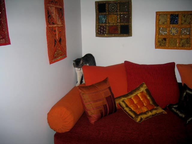 These are my stray kitties, Mr. and Mrs. Kitty, she is a very sweet delicate little thing but terrified and I cannot touch her. He will let me pat him and brush him but clearly he thinks I'm deranged. They know that breakfast will be coming in the morning and he will sit on top of the generator looking in the kitchen window which for him is some sort of cat tv. He appears very interested and watches my cats who have their food bowls just in front of that window. He knows when he sees me come into the kitchen that breakfast will be soon. Mrs. Kitty got one of her hind paws crushed recently and I would like to get her to a vet but I can't get near her.