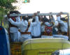 wedding band plus lights jammed into an openbed truck on the way to a wedding