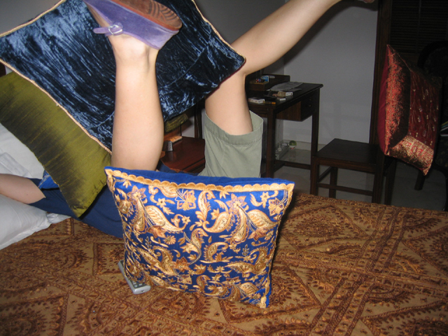 hides in the pillows so she doesn't have to go but then....PACHOW!!!!