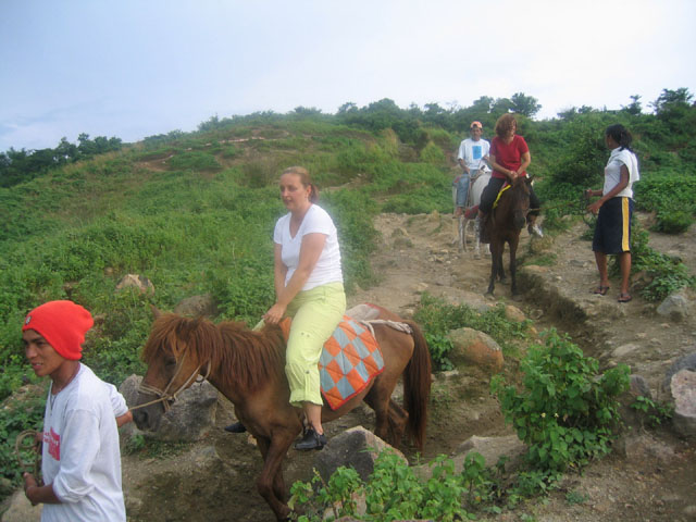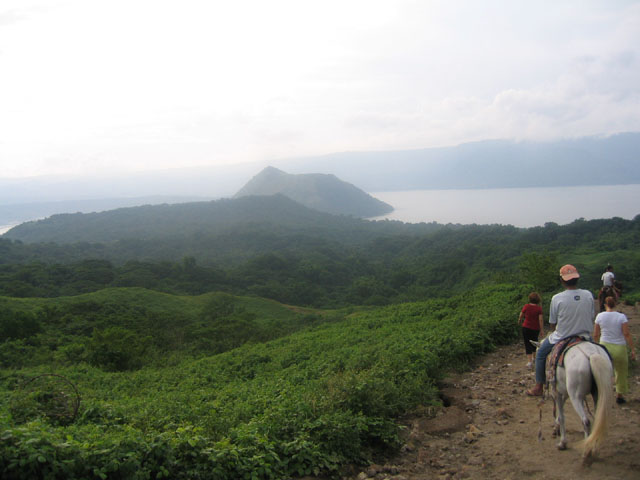 We took a day trip with Beth P. and Tang the driver up to Tagaytay to Taal Volcano, it was fascinating and beautiful. The volcano is an island in the middle of a lake and quite green and tropical. Fissures vent steam from random places in the greenery and rock. We rode ponies (Mike walked) to the lip of the volcano and the inner sides are also richly green and fertile with a huge lake in the center of the volcano. I would have loved a swim but we would have had to make a long approach via the lake by boat and then hiked to the lake and we didn't have the time. The day was cloudy which was good since we didn't have trouble with the heat and it made it very misty and mysterious.