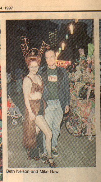 Camo Coco - This picture doesn't truly fit in the media category as it is unpublished. However, it is a photo taken on the very first day that Mike and I laid eyes on each other. We noticed each other but didn't meet until 6 months later. We were both in the art car parade in April 1988 when this picture was taken though both with different groups. Mike was driving with the Art Guys and I was with the Urban Assault Vehicle.