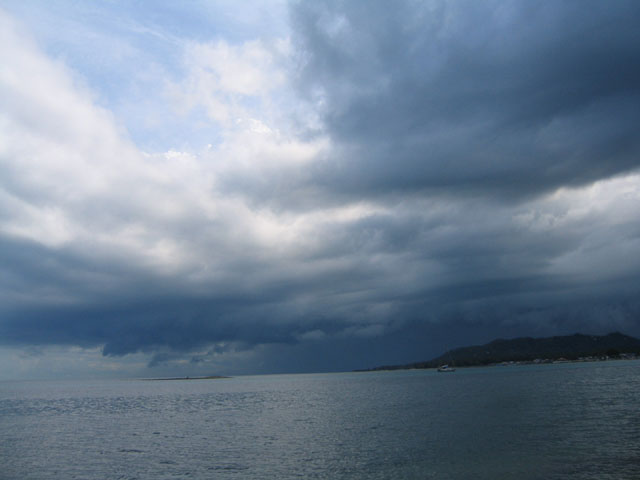 It is monsoon season in Thailand which I love, usually nice sun most of the day and then a black wall of rain sweeps off the mainland and over the gulf, it's so beautiful to watch, here is a storm coming in late in the afternoon