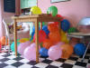 first, decorating, the living room is draped in pink and gold, the garden in blue and silver